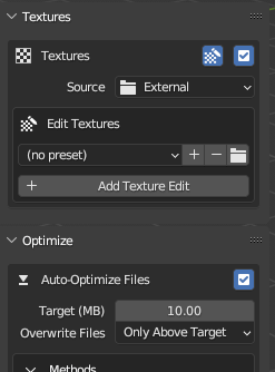 Click + Add Texture Edit to add a texture edit profile. Click โ to remove a profile.