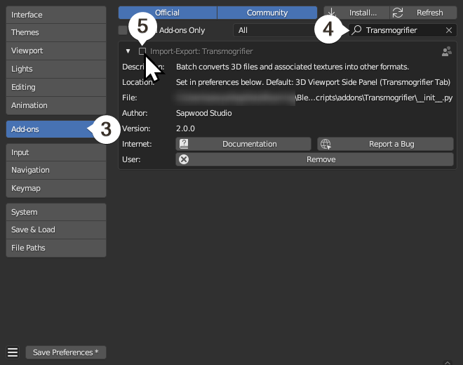 Select the Add-ons tab, and search for "Transmogrifier" in the top right. Disable the add-on by toggling off the Import-Export: Transmogrifier checkbox.