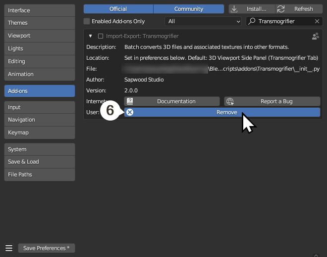 Click Remove to fully uninstall Transmogrifier. Then click Save Preferences if your preferences are not set to auto-save.
