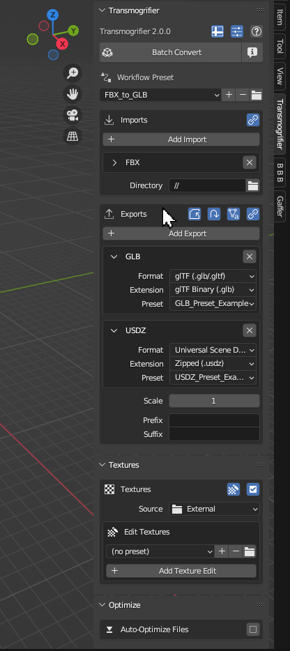 Transmogrifier's user interface is responsive, flexible, and consistent with Blender.